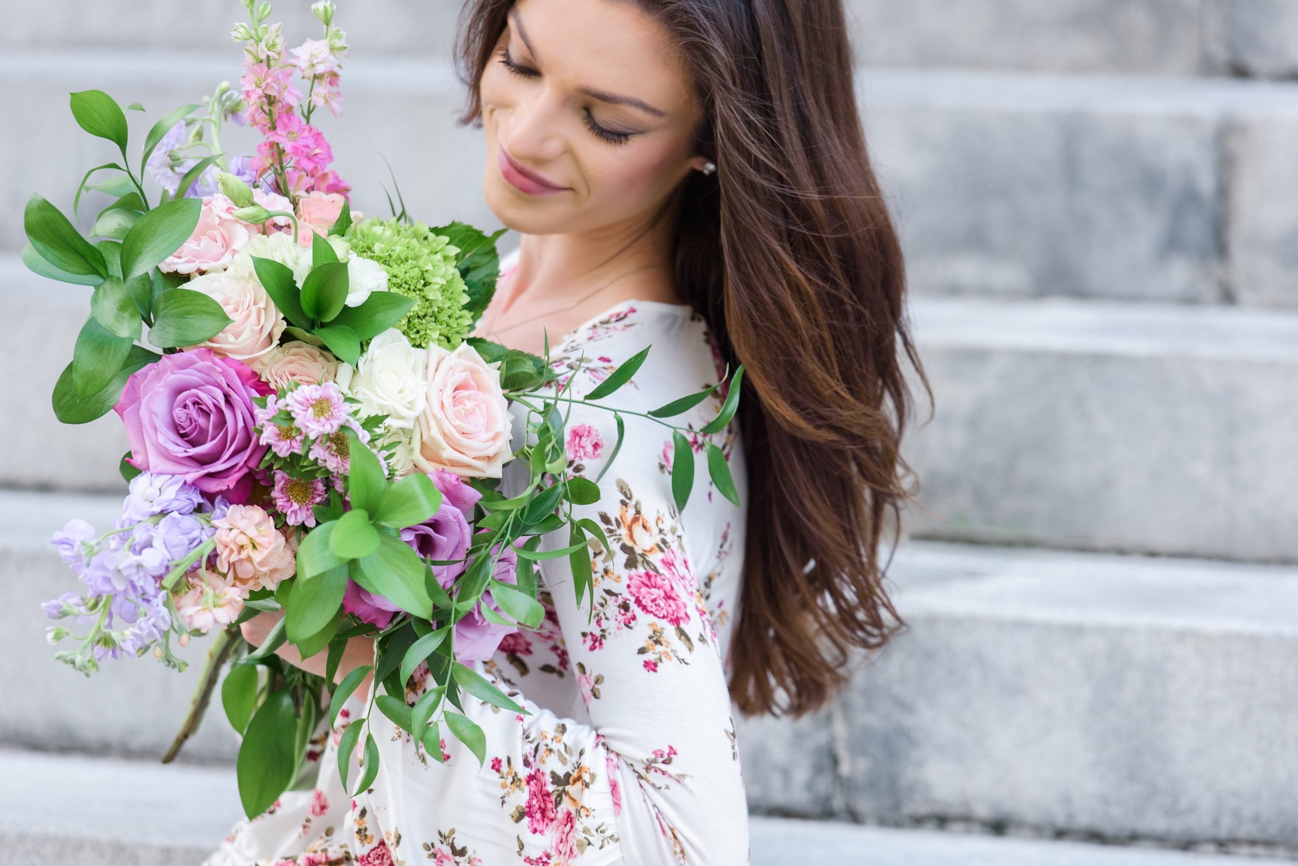 A festive bouquet featuring amaryllis and holly for a classic holiday arrangement.