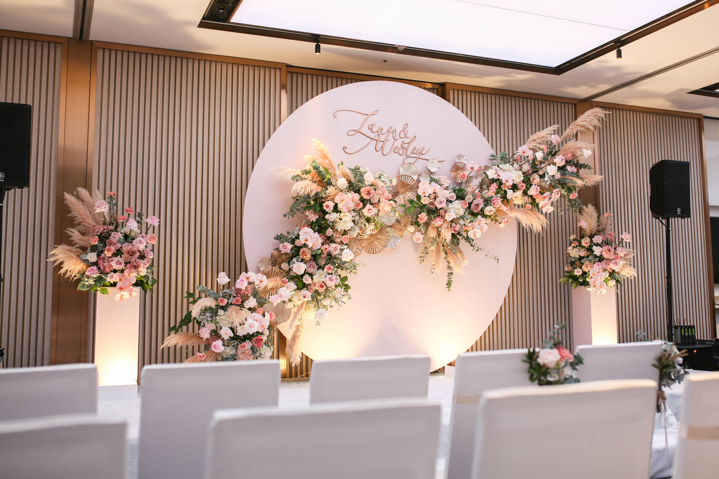 A tranquil bouquet of soft pink roses, white hydrangeas, and gentle greenery.